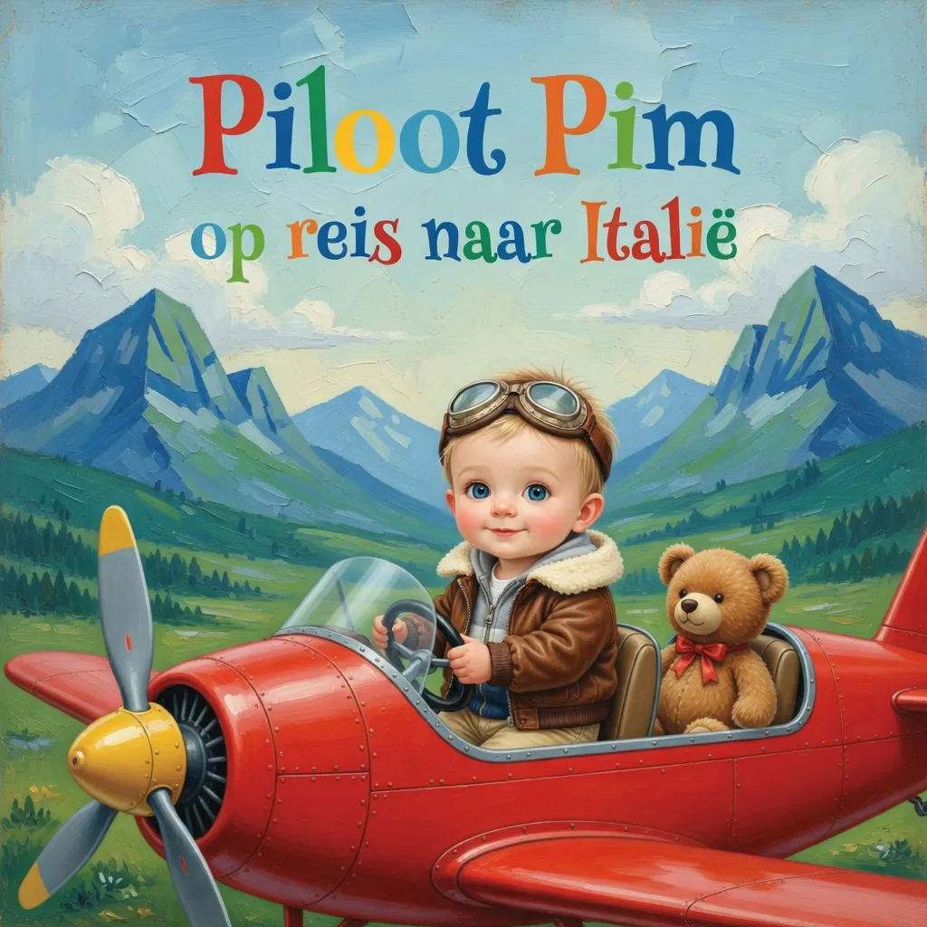 Below you can see the child's room that served as inspiration for the story of Pilot Pim. Pim's room had an airplane theme, which became the basis for his adventurous journey to Italy. On the right you can see the photo of Pim himself. Below you can flip through the complete book.